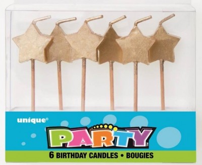 Pack de 6 velas douradas em forma de estrela para festa de aniversário