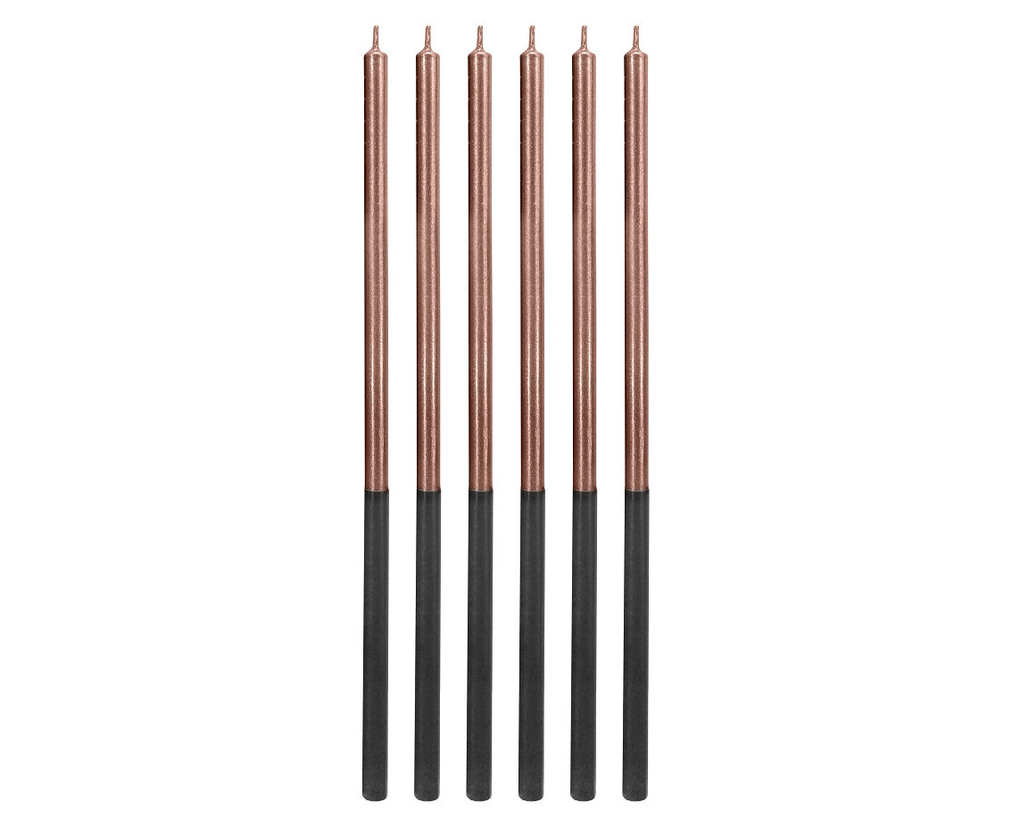 Conjunto de 6 velas altas para bolos de aniversário com muito glamour na cor rosa dourado.