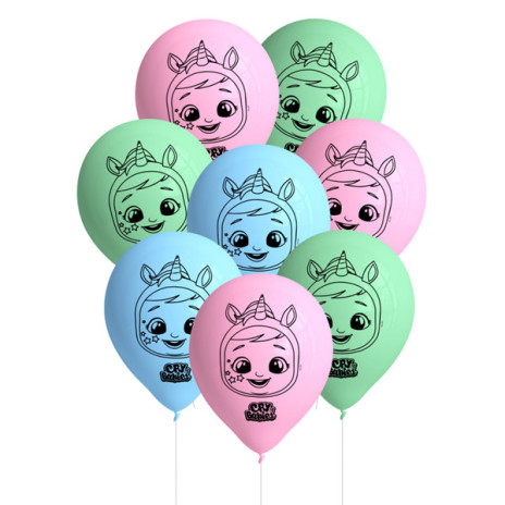 Pack de 8 balões de cores sortidas dos Cry Babies para decorares a tua festa de aniversário com o mesmo tema.