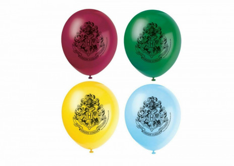 Pack de 8 balões sortidos com estampagem do brasão da escola de Hogwarts do Harry Potter, para decorares a tua festa de aniversário.