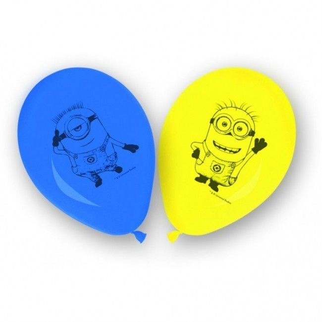 Pack com 8 balões em azul e amarelo dos mais famosos da actualidade, os adoráveis Minions para decoração da tua festa de aniversário.