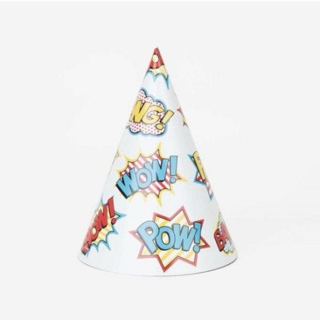 Conjunto de 8 chapéus cone em cartão para a tua festa de aniversário com o tema de super heróis.