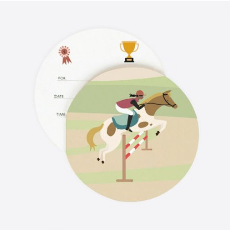 Pack de 8 convites para festas de aniversário com o tema de cavalos. Com local para escrever o nome, data e hora.