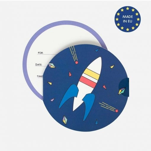 Pack de 8 convites para festas de aniversário com o tema do espaço/cosmos. Com local para escrever o nome, data e hora.