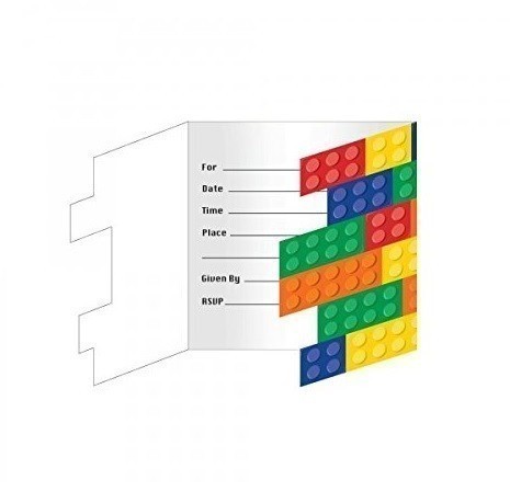 Pack de 8 convites com envelope para convidares os teus amigos para a festa de aniversário com o tema LEGO Block Party.