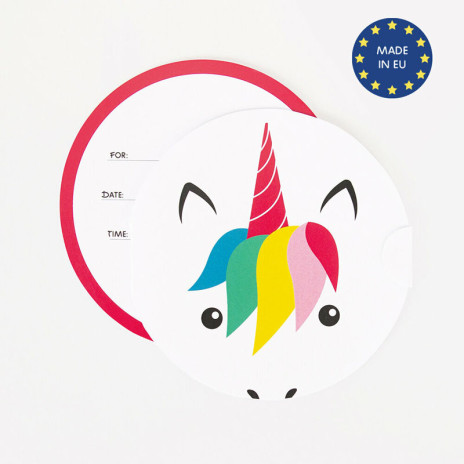 Pack de 8 convites com envelope para festas de aniversário com o tema de unicórnios, coleção mini unicórnio.