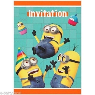 Pack com 8 convites dos destemidos Mínimos para enviar aos seus amigos de uma forma especial o anuncio da sua festa de aniversário.