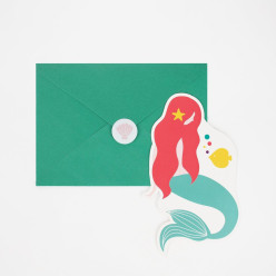 Pack de 8 convites com envelope para festas de aniversário com o tema de sereias.