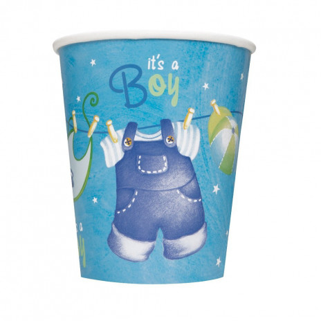 Conjunto de 8 copos papel descartáveis da colecção Blue para festa de menino, ou eventos de Baby Shower.