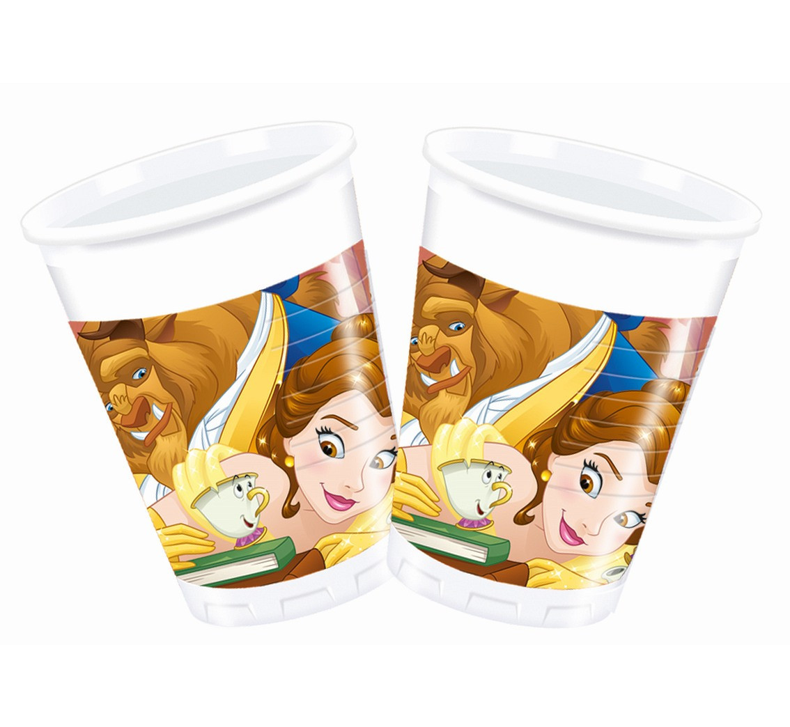 Conjunto de 8 copos de plástico para festa da Bela e o Monstro, coleção Magical Ballroom. Com capacidade para 200ml.