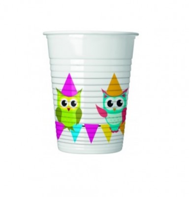 Conjunto de 8 copos de cartão, descartáveis para festas de aniversário das Corujinhas