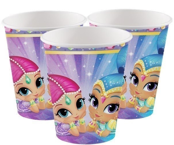 8 copos descartáveis da Shimmer and Shine, para as tuas festas serem ainda mais alegres.