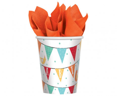 Conjunto de 8 copos de papel de Animais da Quinta para a tua festa de aniversário. Com capaidade para 266ml. Feitos em papel, amigos do ambiente.