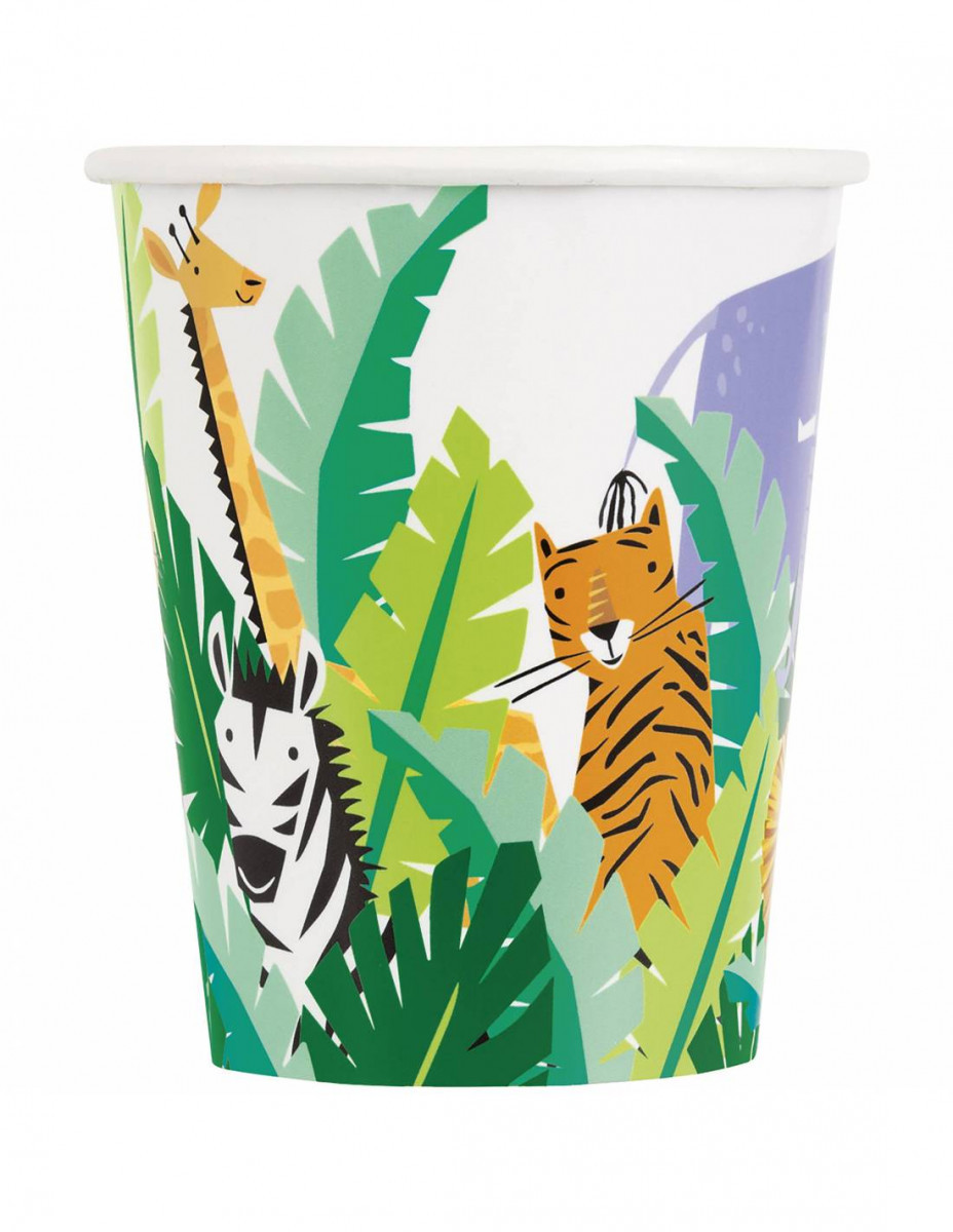 Conjunto de 8 copos de papel de animais da selva para decoração de festa de aniversário.