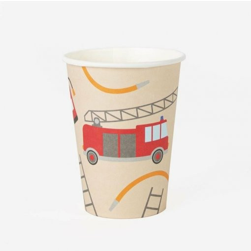 Conjunto de 8 copos papel com o tema de bombeiros. O complemento ideal para tua mesa de aniversário com o mesmo tema.