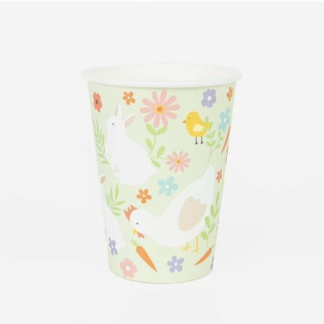 Conjunto de 8 copos papel com o tema de coelho/páscoa. O complemento ideal para tua mesa de aniversário com o mesmo tema.