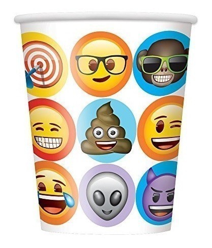 Conjunto de 8 copos plásticos descartáveis com o tema de festa Emoji.