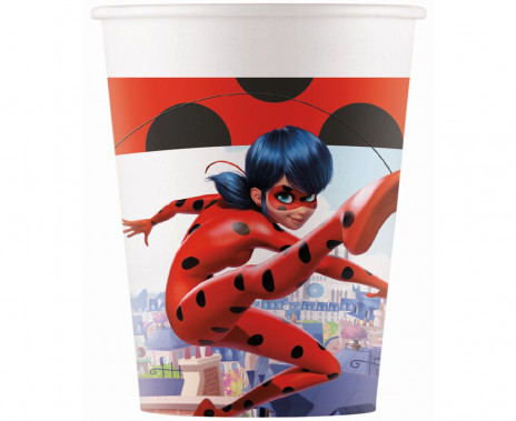 Conjunto de 8 copos de papel da Ladybug feito com material biodegradável. Ideal para decorares a tua festa de aniversário.