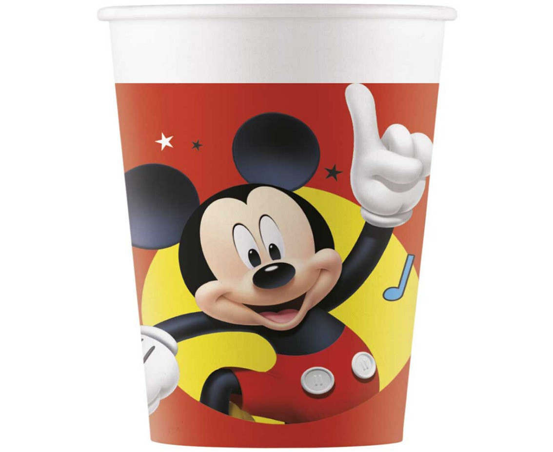 Conjunto de 8 copos de papel descartáveis do Mickey com capacidade para 200ml.