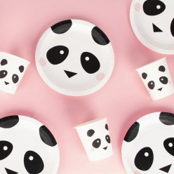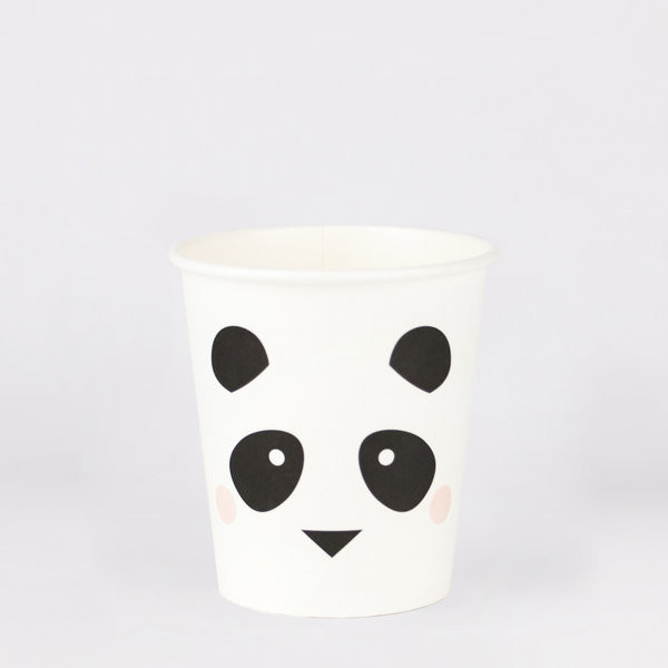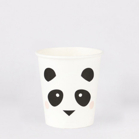 Conjunto de 8 copos papel com a cara de panda. O complemento ideal para tua mesa de aniversário com o mesmo tema.