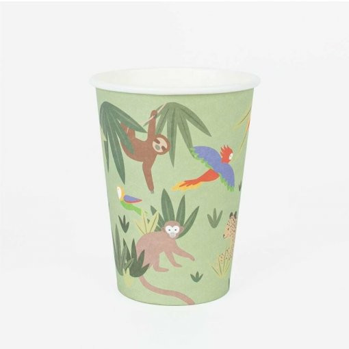 Conjunto de 8 copos papel com o tema tropical. O complemento ideal para tua mesa de aniversário com o mesmo tema.