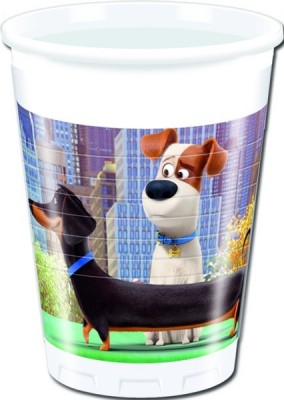 Conjunto de 8 copos de plástico dos fantástico animais do filme Secret Life of Pets - A Vida Secreta dos Nossos Bichos. Capacidade: 200ml.