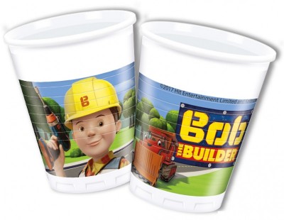 Conjunto de 8 copos plásticos descartáveis com o tema de festa Bob Construtor.O complemento ideal para tua mesa de aniversário.Capacidade: 200ml