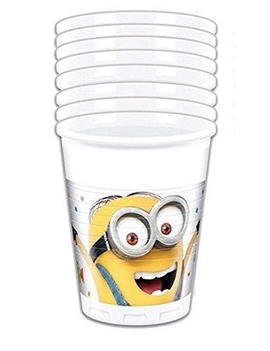 Conjunto de 8 copos de plástico, descartáveis para festas de aniversário alusivas ao tema Minions