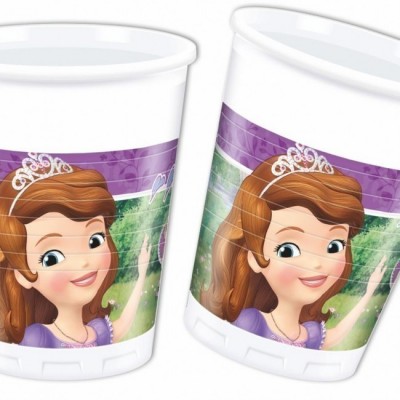 Os convidados reais da tua festa de aniversário só merecem beber nestes preciosos copos decorados com a Princesa Sofia.