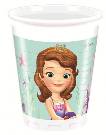 Os convidados reais da tua festa de aniversário só merecem beber nestes preciosos copos decorados com a Princesa Sofia versão Sereia. Conjunto de 8 copos em plástico. Capacidade: 200ml.