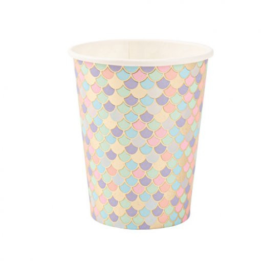 copos de papel com o tema de sereias para decorar a tua festa de aniversário com o mesmo tema.