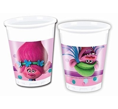 Copos de plástico dos novos amigos, mais fofos e coloridos, os Trolls para as tuas festas serem ainda mais alegres.8 unidadesDimensões 20 cl