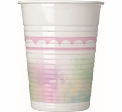 Conjunto de 8 copos descartáveis para festas de aniversário com o tema Unicórnio.Capacidade: 200ml