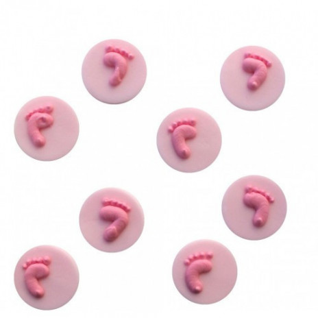 Pack 8 toppers artesanais feitos em açúcar para decoração de bolos, com motivo de pézinhos de recém nascido em cor de rosa