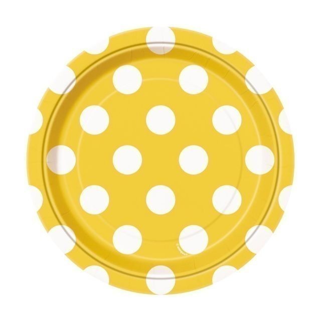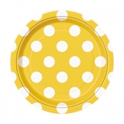 Pack de 8 pratos descartáveis na cor Amarelo claro com bolinhas brancas