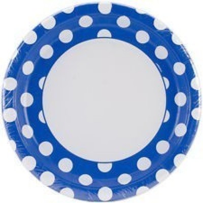 Pack de 8 pratos descartáveis na cor Azul marinho com bolinhas brancas