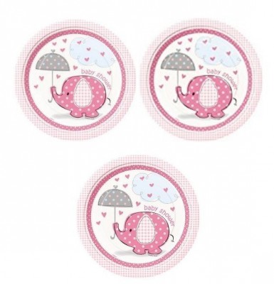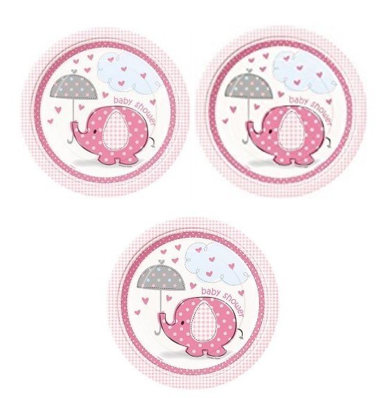 8 Pratos Baby Shower Rosa redondos 22 cm