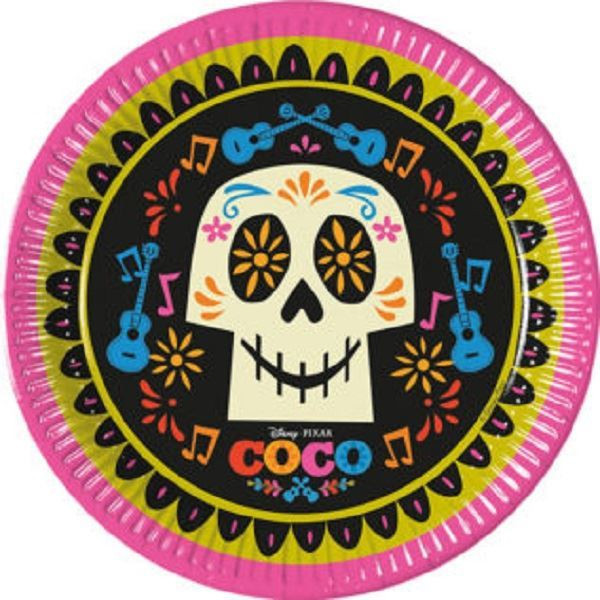 Conjunto de 8 pratos do filme Coco da Disney Pixar, para decorar a tua festa de aniversário com o mesmo tema. Ou então para a festa de halloween.