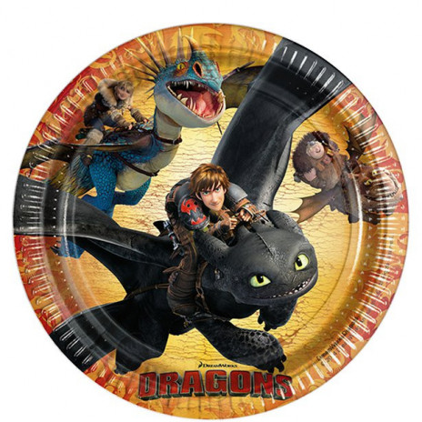 Embalagem com oito pratos descartáveis para a tua festa viking Como Treinares o Teu Dragão, artigo oficial e licenciado da Dreamworks e do filme original How to train your dragon.