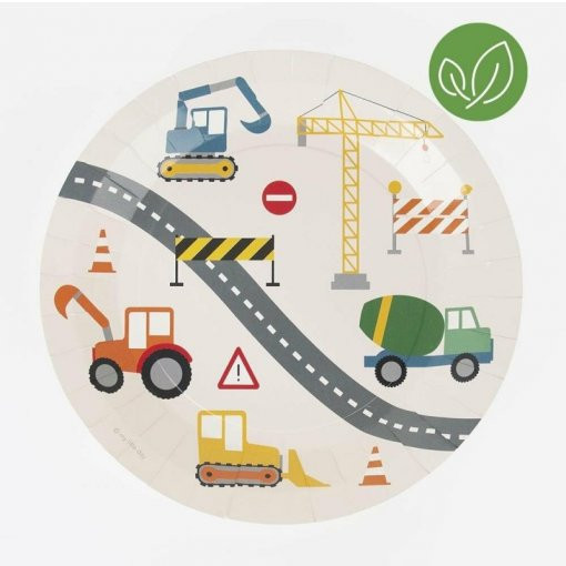 Conjunto de 8 pratos com o tema construção para decorar a tua festa de aniversário com o mesmo tema.