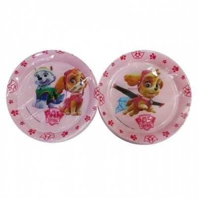 Conjunto de 8 pratos de plástico da personagem Skye da Patrulha Pata, com 22cm de diâmetro.Modelo sortido enviado aleatoriamente.