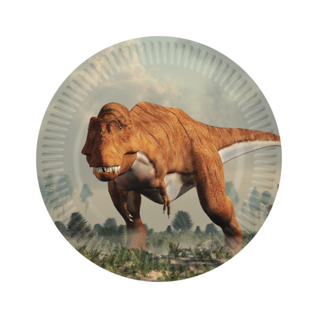 Conjunto de 8 pratos de dinossauros, para decorar a tua festa de aniversário com o mesmo tema.