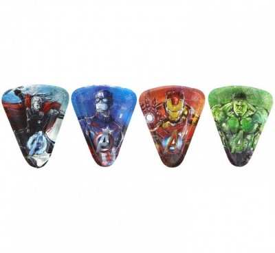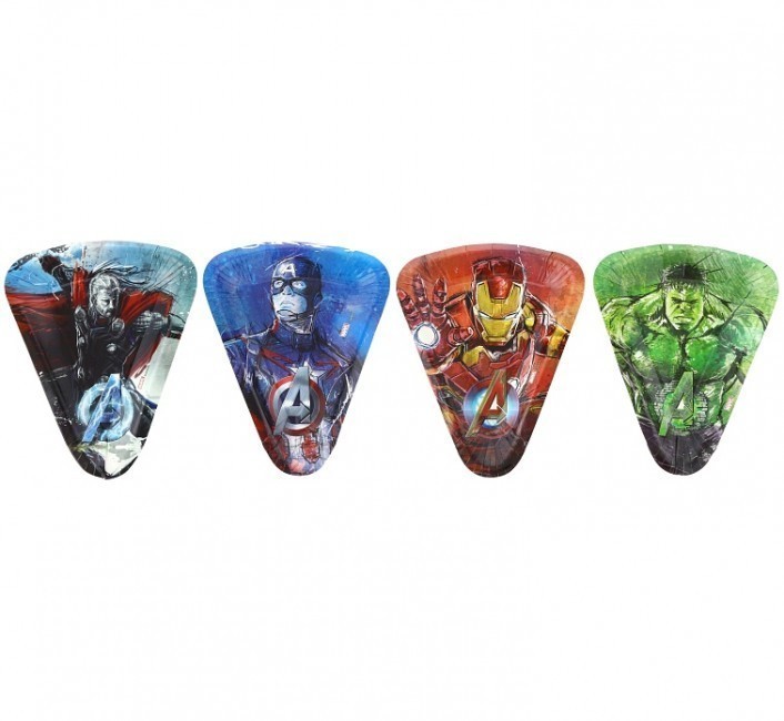 Conjunto de 8 pratos sortidos dos Avengers com imagens do Capitão América, Hulk, Homem de Ferro e Thor em forma de fatia, ideal para bolo ou pizza.