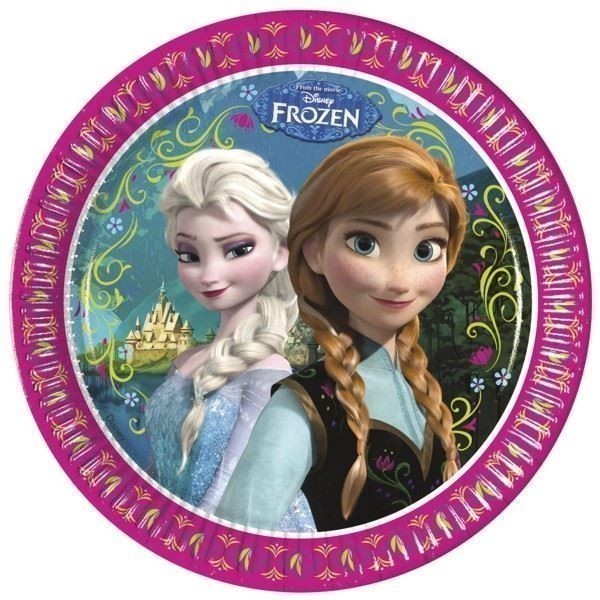 Os pratos para festas de aniversário das fãs das Princesas Anna e Elsa do filme Disney Frozen.