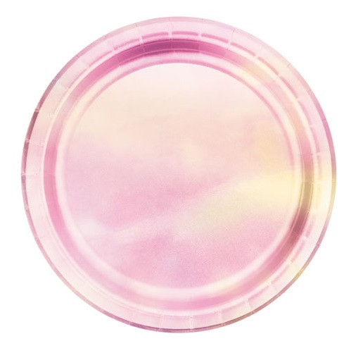Conjunto de 8 pratos descartáveis de cor iridescente para a sua festa de aniversário ou para qualquer outra decoração.