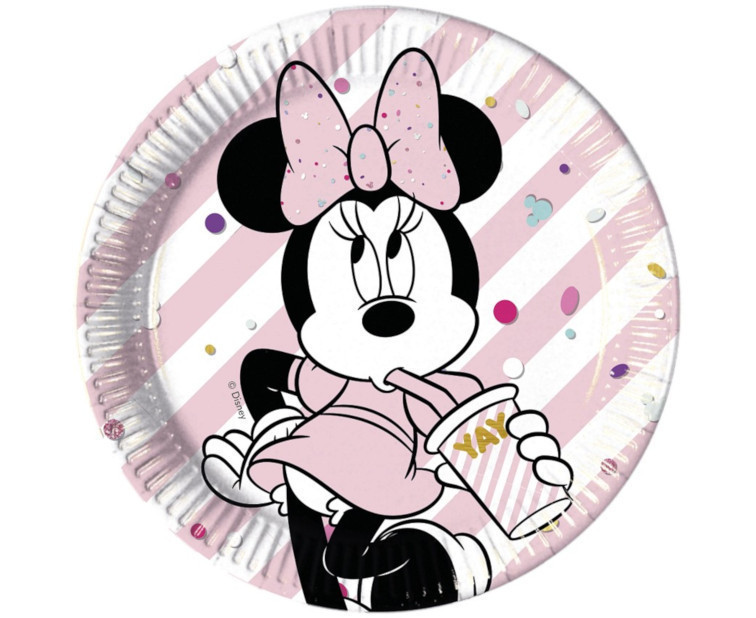 Conjunto de 8 pratos da Minnie, coleção Party Gem da Disney. Ideal para decorar a tua festa de aniversário. Com 23cm de diâmetro.