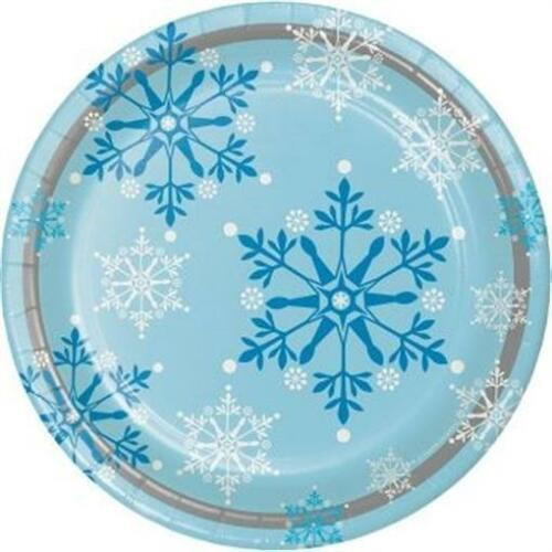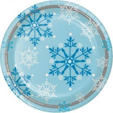 Conjunto de 8 pratos de papel descartáveis para a sua festa de aniversário de flocos de neve, ideal para temas de princesas de inverno ou da Frozen.