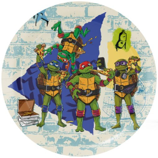 Conjunto de 8 pratos das Tartarugas Ninja, para decorar a tua festa de aniversário com o mesmo tema.