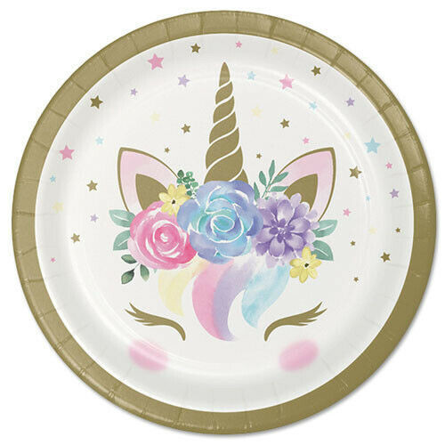 Conjunto de 8 pratos de papel descartáveis de unicórnio bebé para a sua festa de aniversário. Ou então para chá de bebé.