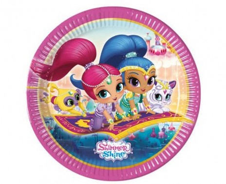 Festa divertida é com estes pratos descartáveis da colecção Shimmer e Shine de medidas aproximadas 23 cm